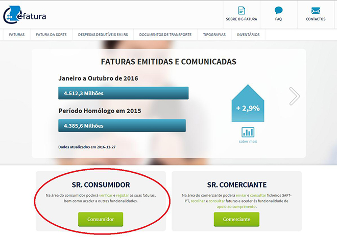 1º Passo - Aceda ao site E-Fatura, seleccione a opção "Sr. Consumidor".