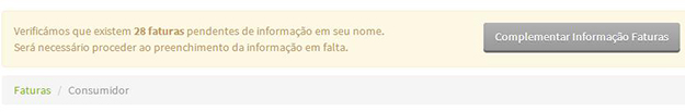 2º Passo - Após autenticação, é dirigido para a página principal onde poderá aceder à informação das faturas e complementar a informação.